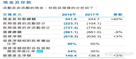智通财经注意到,太平洋航运不仅业务规模在持续扩大,公司财务同样保持稳健。财报显示,公司现金及存款总额同比增长40%至3.42亿元,借贷净额相对股东权益比率由2017年的55%降低至50%,借贷净额相对自有货船账面净值比率由2017年的35%降低至34%。此外,公司营运资金净额增长3个百分点至1.4亿元。