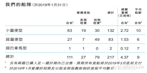 财报显示,2018年公司购置了七艘现代化货船,其中四艘的总代价的半数以发行股份支付。另外,公司还出售了一艘船龄较高的货船。该公司目前拥有111艘自有货船,连同租赁货船,公司一般营运货船总数达到217艘。