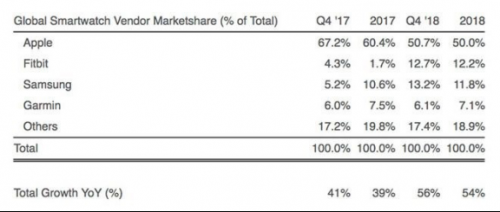 2018年智能手表出货量曝光 苹果Apple Watch占据半壁江山