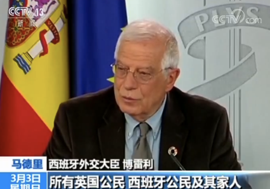 围绕英国“脱欧”抉择牵涉的一系列“后遗症”,西班牙外交大臣博雷利1号举行新闻发布会宣布,西班牙政府已发布应急预案,提议为身处西班牙的英国公民保障权益,以换取本国公民在英国获得同等待遇。