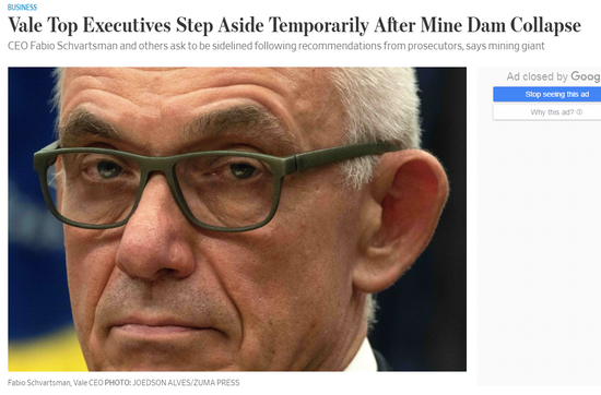 巴西矿业巨头淡水河谷公司(Vale SA)的首席执行官法比欧-施瓦茨曼(Fabio Schvartsman)和其他高管已应要求暂时离职。基本金属执行董事爱德华多-德萨莱斯-巴托洛梅奥(Eduardo de Salles Bartolomeo)被任命为临时首席执行官。此前,该公司的一座大坝发生垮塌,导致186人死亡。