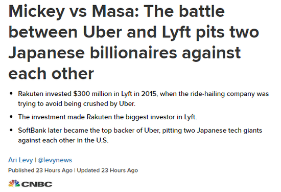 网约车巨头Uber和Lyft之间的竞争将在2019年升温,双方都准备于今年上市。但日本的斗争可能比美国更激烈。因为尽管这对冤家在旧金山相距只有几英里,但两家公司的最大股东却都在东京。