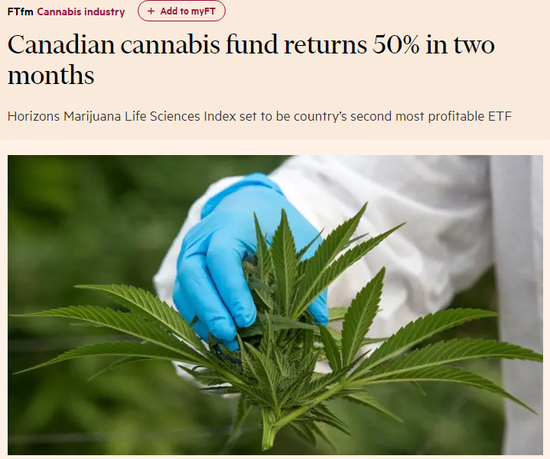 全球首只大麻ETF今年迄今的回报率超过50%,预计将成为加拿大利润第二高的ETF。数据提供商ETFGI的数据显示,尽管今年出现了一些资金外流,但Horizons Marijuana Life Sciences指数ETF的资产规模已增至13亿美元,成为加拿大第18大ETF。它的高管理费用以及从借出股票中收回大笔费用的能力,意味着它正在迅速赶上加拿大最赚钱的ETF,而后者的资金规模是它的5倍多。