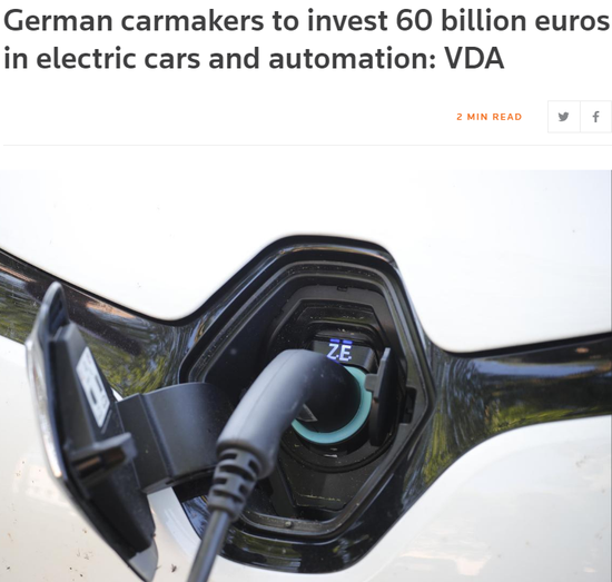 德国汽车工业协会(VDA)负责人在日内瓦汽车展开幕前表示,未来三年,德国汽车业将在电动汽车和自动驾驶领域投资近600亿欧元(合680亿美元)。