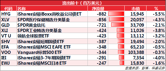 一周净流出前十: