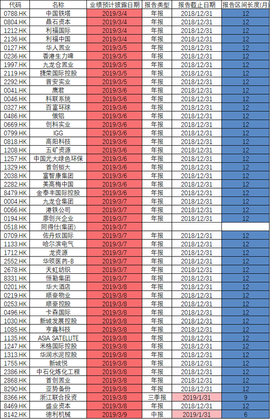 新浪港股讯 3月4日消息,港股进入业绩集中披露期,本周共计有47家公司披露业绩。有中国铁塔、华人置业、九龙仓、鹰君、俄铝、IGG、富智康、美高梅、九龙仓、港铁、华润水泥等知名公司披露业绩。敬请期待!