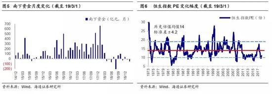 进一步上涨需等待业绩验证。进入3月份之后,随着中国宏观基本面数据以及企业年报陆续公布,市场将进入基本面验证阶段。我们预计3月即将公布的中国经济数据难有明显改善,最新公布的2月官方PMI继续回落至49.2,创下16年3月以来新低,财新PMI为49.9,仍处在荣枯线以下。从企业盈利的角度来看,目前港股2358家上市公司中仅216家披露了18年年报,披露率仅9%。而恒生指数50只成分股中仅10只披露了年报,这10家企业在恒生指数成分股中2017年的营收、净利润占比分别为3.4%、6.6%。以这10家企业为样本,其在2018年的营收、净利润增速分别为-2.5%/31.5%,相对于2017年的5.5%/37%有所回落。中期看,18/2-18/10期间港股持续调整,调整的重要原因之一是港股盈利回落,全部港股累计净利润增速从2017年28.8%回落至2018Q2的9.2%,目前港股净利润增速仍在回落过程中。这轮盈利筑底特征类似2002-05年期间,即W型筑底。这轮盈利改善左侧底回升始于2016年二季度,现在是二次探底回落过程中,我们预计右侧底在2019年二、三季度。从估值角度来看,这轮恒生指数PE(TTM,下同)从16/2的9.6倍升至18/2最高的13.6倍,在港股近期最低点(2018/10/30的恒生指数24540点)PE最低回落到为10倍,已经达到历史估值核心区间下轨(10-18倍)。目前(截至2019/3/1)为10.8倍,处于1973/5年以来从低到高16%分位,仍处于历史底部区域,对比历史港股估值优势凸显。港股在3月份之后进入基本面验证阶段,未来进一步上涨仍需等待业绩验证。