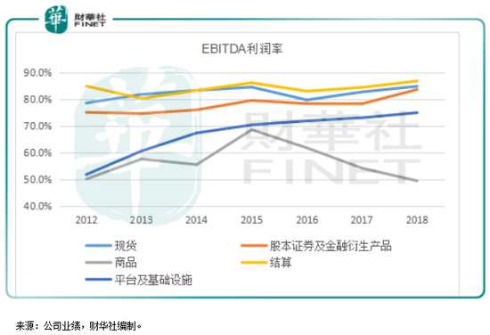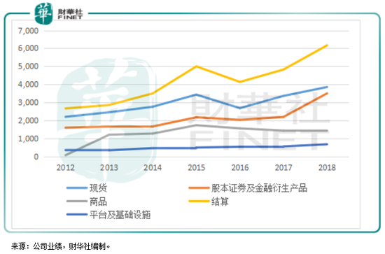 我们在一月中旬发表的《IPO融资额冠绝全球的港交所,为何不大涨?》中已经提过,港交所的收入主要划分为现货、股本证券及金融衍生品、商品交易所、结算以及平台和基础设施服务。
