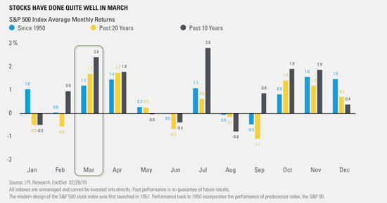 “是的,2019年开局不错。与此同时投资者也应该注意到,在过去的10年和20年里,3月份是一年中美股表现第二强的月份,4月也一直表现很好。”