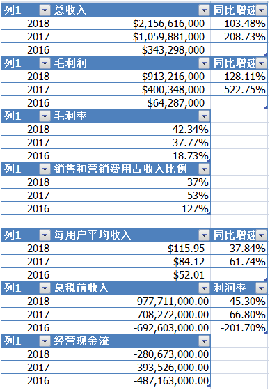 公司收入增长速度开始放缓,但增速依然保持较高速率;客单价,即每用户平均收入保持迅猛增长;利润方面依旧处于亏损,每年经营活动现金流开始下降。
