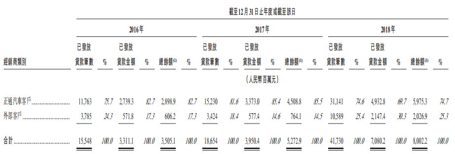公司的主要业务分两部分:零售贷款业务和经销商贷款业务
