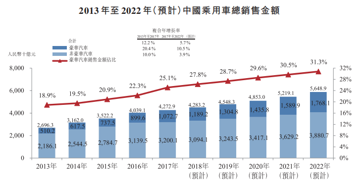 但在可支配收入增长、进口关税下调和汽车金融服务普及的驱动下,豪华汽车市场的增速将超过非豪华汽车,在市场规模的占比也将逐步提升,预计2022年,豪华汽车将占乘用车市场销售额的近三分之一。