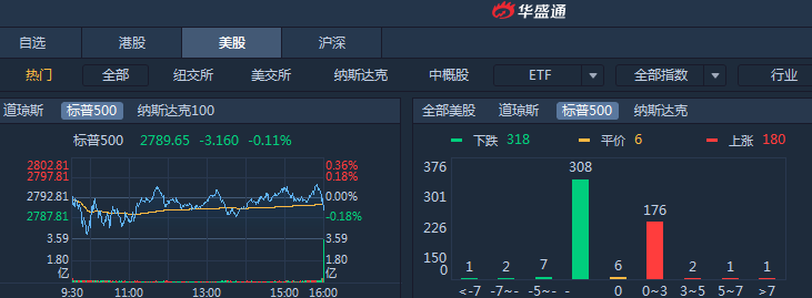 周二美股小幅收跌,标普500指数收跌0.11%,道琼斯收跌0.05%,纳斯达克收跌0.02%。