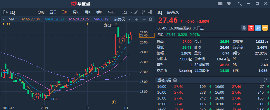 奈飞2002年上市时首发价格为15美元,上周五收盘价为357.12美元,16年时间股价翻了近乎300倍。而爱奇艺去年3月23日上市时首发价格为18美元,上周五收盘价为27.07美元,上涨50.38%,尽管相对于标普500上涨8.32%的增幅看还算不错,但对比奈飞长期的高额投资回报来看,爱奇艺股价增长还远远不够。