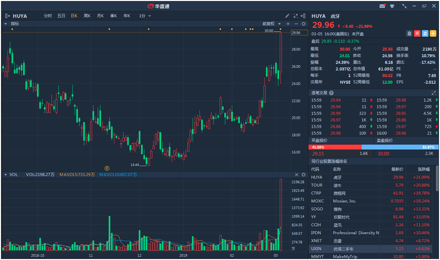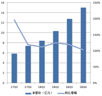 受益于用户增长强劲及变现能力的提高,虎牙第四季度净营收为15.049亿元,同比增长103.1%;由于平台丰富的内容和差异化,吸引了新用户的加入,2018年第四季度,公司平均月活用户数达到1.16亿,同比增长34.5%,环比增长17.2%;付费用户数增长至480万,相比去年同期增长73.1%。