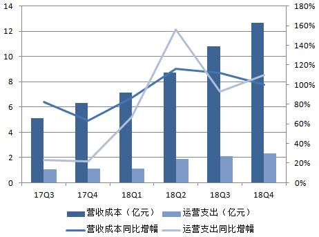 成本方面,公司营收成本及运营支出高速增长。其中,第四季度营收成本达12.66亿元,比上年同期增长100.1%;运营支出达到2.312亿元,较上年同期1.099亿元增长110.0%。营收成本增长主要是由于营收分成费用、内容成本、带宽成本增加所致;运营支出主要是研发开支、销售与营销与总务行政开支。