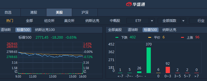 经济增长引担忧,周三美股三连跌,标普收跌0.65%,道指跌0.52%,纳指跌0.93%。