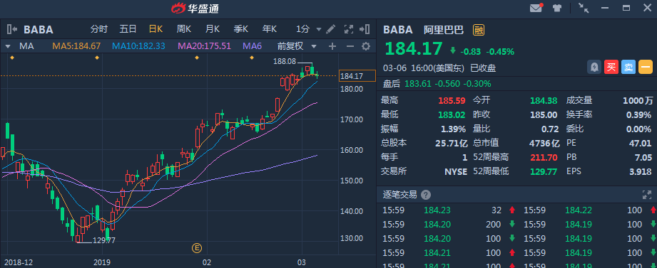 此次反弹跟A股同步,更多的是宏观层面的向好转变带来的动力,而从公司角度来看,对于优质公司,下跌正是加仓的良好时机。阿里巴巴作为国内最大的电商,同时在积极扩张海外业务,而随着中美贸易战的缓和,美国作为世界最大的市场,阿里巴巴也从未停止过探索。