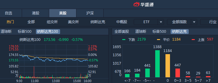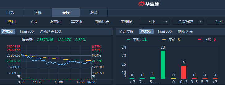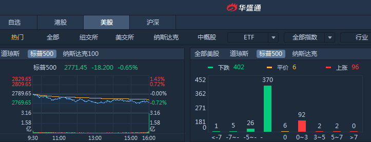 经济增长引担忧,周三美股三连跌,标普收跌0.65%,道指跌0.52%,纳指跌0.93%。
