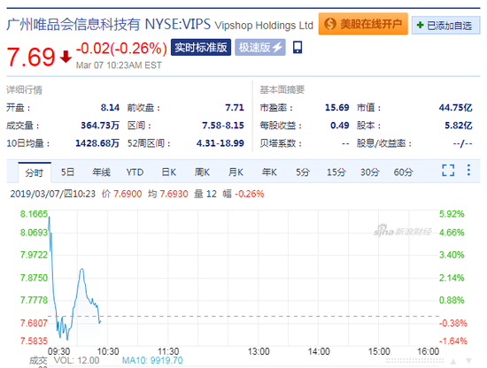 2018年12月22日,SEC公布的文件显示,腾讯从12月17日到21日,从二级市场共买入唯品会5821606股ADS,总持股比例由原来的7%,增加到7.8%。