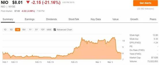 受惨淡的财报业绩影响,蔚来股价于3月6日暴跌21.16%,并于盘后继续下跌4%。