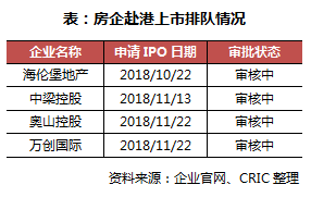 德信中国于2月26日正式在港交所挂牌上市,期后银城国际又于3月6日在港成功进行IPO。因此截至3月6日,在港交所等待IPO的房企有海伦堡地产、中梁控股、奥山控股以及万创国际四家。