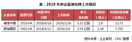 本月德信中国正式在香港挂牌上市,期后银城国际也于3月6日成功进行IPO。此外,期后蓝光发展旗下物业蓝光嘉宝服务也在3月4日递交了上市申请。因此截至2019年3月6日,排队上市中的房企和物业公司分别为4家和3家。