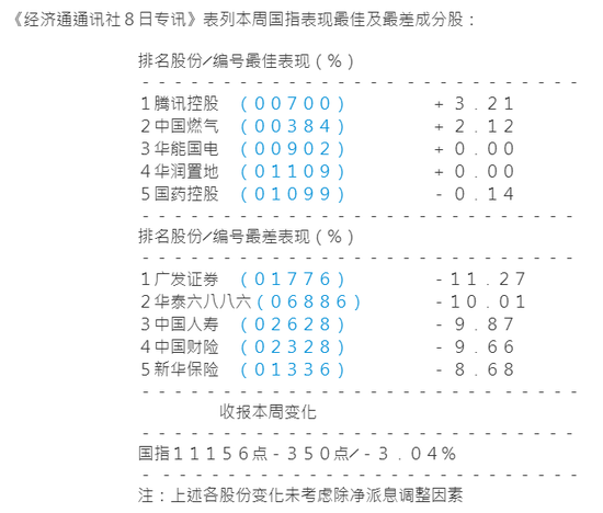 至于手游股方面,腾讯(00700)全周有多项消息支持曾上及370元高位,公司计划增加对中国电竞的投资,加上旗下《完美世界》手游版周三已正式推出,野村又唱好其重磅游戏《王者荣耀》上月付费收入可创历史新高,全周涨3﹒21%报347元,是全周表现最佳国指成分股。IGG(00799)年度业绩于周三提早外泄,翌日跌逾11%,全周收10﹒82元跌7﹒52%。