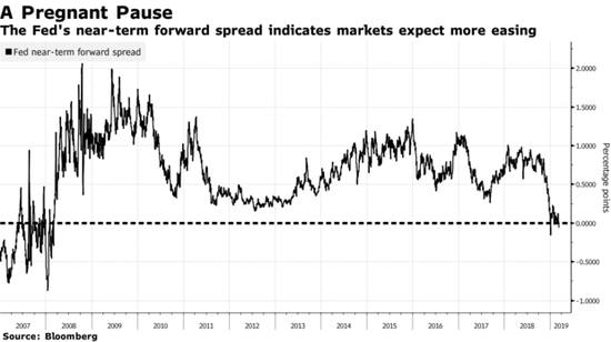 它上一次进入负值领域是2008年全球金融危机以来的第一次,并且是在美联储主席鲍威尔发出央行不急于加息的信号之前。