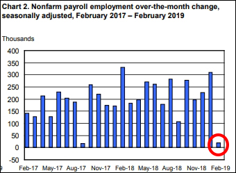 劳工部周五(3月8日)公布数字显示,美国今年2月新增的非农就业人数为2万。这是自2017年9月以来的最低数字。当时就业市场因两场台风而受到严重影响。