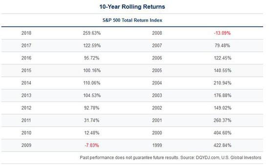 马克表示,由于金融危机,在过去20年中,只有2008年和2009年股息再投资10年期间出现亏损。即便是上世纪90年代末和本世纪初的科技泡沫,也不足以阻止大多数投资者失去10年前的主要投资。