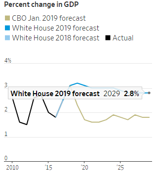 基石宏观(Cornerstone Macro)的政策分析师安迪-拉珀里埃(Andy Laperriere)表示,2019年的增长速度有可能保持不变(该公司预计今年的增速为2.8%),但他怀疑这种增长能否持续到下一个十年。他说:“有人认为政府采取了一些措施来提高经济的潜力,这是有道理的,但是这种规模是难以调和的。”