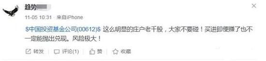 2018年11月份,许多网友雪球也注意到中国投资基金公司,并表示其含水量很高,除了服气,就是服气: