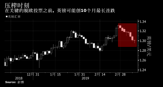 新浪美股 北京时间11日讯,英镑周一连续第八天下跌,将创5月份以来最长连跌,因为投资者在下议院一次重要投票之前回避该货币。英国议员周二将在两个月内第二次就首相特里莎·梅的脱欧协议投票,而3月29日将是英国脱离欧盟的最后期限。由于特里莎·梅没有从欧盟获得足够让步,她不仅可能输掉议会对协议的支持,甚至也可能输掉自己的政治地位。