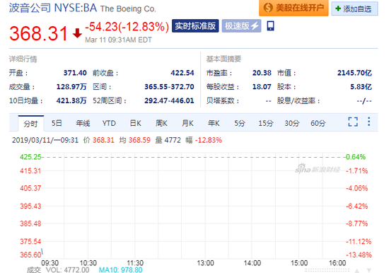 新浪美股 北京时间11日讯,波音公司开盘股价大跌12%,此前埃塞俄比亚航空公司一架波音737 Max飞机坠毁,机上157人全部遇难。这是五个月里的第二起737 Max坠机事故。全球多个国家/地区的航司已对该机型飞机进行了停飞。除了中国民航在今日下令所有波音737MAX8在18点前停飞外,埃航也已经停飞了公司旗下的所有737MAX8。此外,开曼航空已停运旗下两架737MAX8。印尼命令本国航空公司停飞波音737 MAX客机。