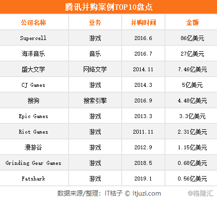 对腾讯而言,收购更为集中,仅仅围绕互动娱乐这个领域,在游戏、网络文学、音乐进行资源整合,尤其是游戏下了重注。