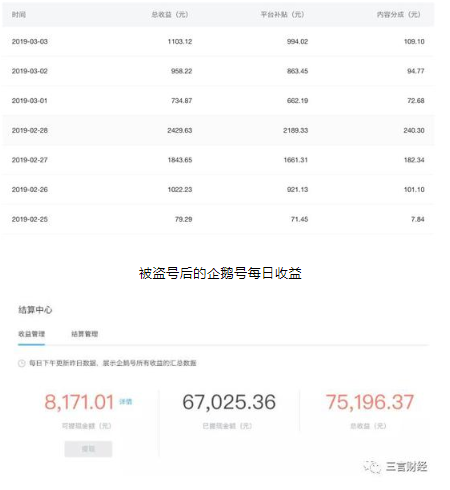 被盗号后的企鹅号每日收益被盗号后的企鹅号每日收益