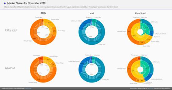 这一点在欧洲领先的零售商Mindfactory中表现得很明显,AMD产品在Mindfactory 2018年第三季度销售额中所占份额超过70%,而英特尔仅为30%。Ryzen 7 2700X和Ryzen 5 2600是该零售商最受欢迎的AMD 中央处理器,而英特尔的Core i7-8700K仍然是最受欢迎的英特尔第8代核心处理器。AMD的Ryzen处理器的市场份额首次超过英特尔最受欢迎的高端处理器。