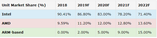 我预测到2022年ARM处理器将占据微处理器市场15%的份额,这是非常合理的。