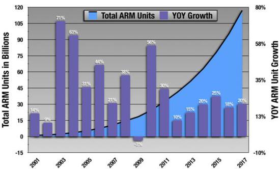 ARM的市场渗透将主要通过英特尔的新需求和现有市场份额来实现。