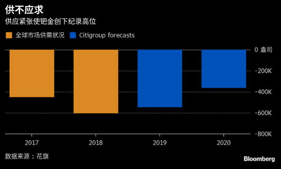 花旗去年12月预计钯金今年将有545000盎司供应缺口。