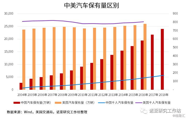 3. 我国当前的整体汽车保有量已经接近美国,但是人均汽车保有量上依旧存在明显差距。