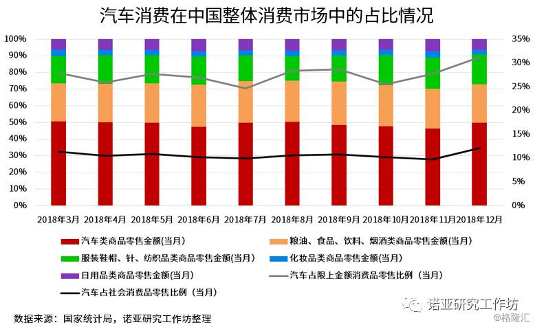 1. 2018年全年,汽车消费占到社会消费品零售总额的10%,对于我国的整体经济影响非常巨大。