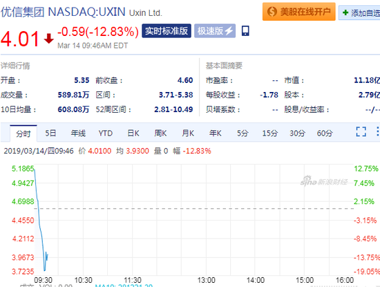 新浪美股 北京时间14日讯,周四美股开盘,优信快速转跌,目前跌超近13%,最高跌超18%,此前一度涨超16%。