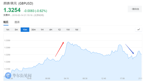 3月13日,英国议会下院投票反对英国在任何情况下“无协议脱欧”。受此消息提振,英镑兑美元短线飙升,创近两年最大单日涨幅,刷新九个月新高。