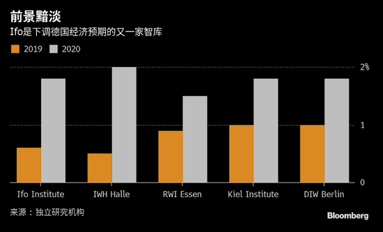 Ifo Institute现预计,德国今年仅扩张0.6%,低于之前预计的1.1%,是对德国最悲观的预期之一。但是,该机构认为,经济的疲软将是暂时的,并将2020年的预期上调到1.8%。
