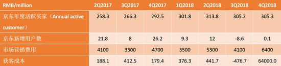 京东由于在2018年Q3新增用户出现负增长,获客能力出现衰退。