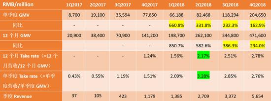 更为重要的是,仅采取单一的“12个月GMV”的算法,会影响到很多其他重要指标的计算,比如Take rate(take rate=Revenue / GMV)。
