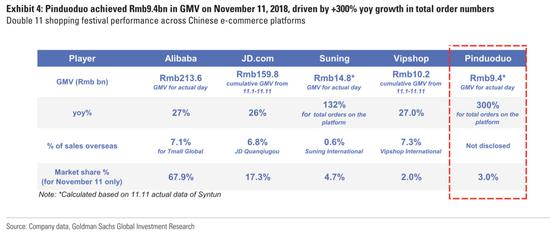 拼多多双十一表现。数据来源:Goldman Sachs