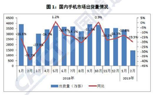 从大环境来看,中国手机市场整体呈现低迷状态。根据中国信通院公布的数据来看,中国手机市场今年2月的总体出货量为1451.1万部,同比下降19.9%,其中4G手机1398.4万部,同比下降20.2%,国产手机品牌1310.8万部,同比下降14.7%。